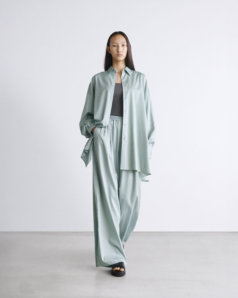 SHIRT Satin Oversized Band Collar Shirt ¥29,700